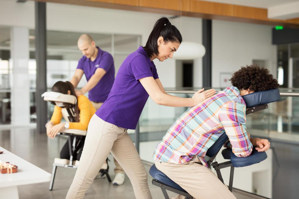 Corporate massage is a specialized on-site service tailored for workplaces and events, meticulously crafted to enhance employee well-being. Our licensed therapists arrive equipped with portable massage chairs or tables, offering brief yet rejuvenating sessions that typically last between 10 to 20 minutes. These targeted treatments are designed to alleviate stress and invigorate energy levels, all without the need for employees to step outside their busy office environment.